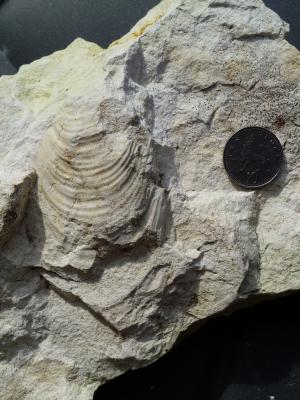 One of the key index fossils of this chalk is the bivalve Sphenoceramus (Inoceramus) lingua (see photo collected on a GSN field meeting with Professor Rory Mortimore 16.7.2011).